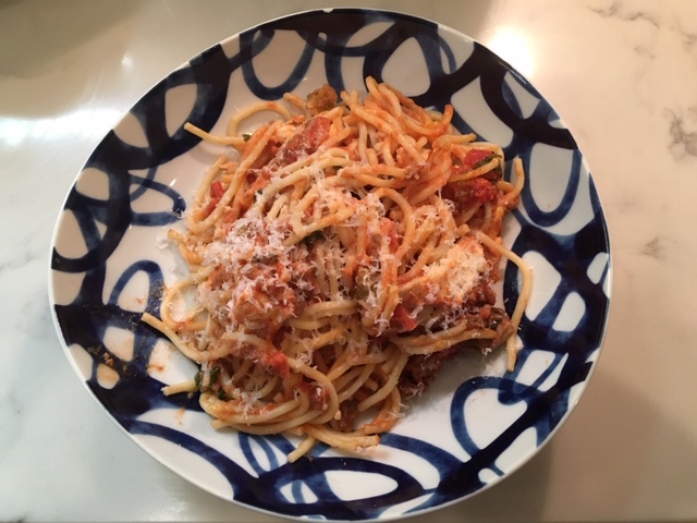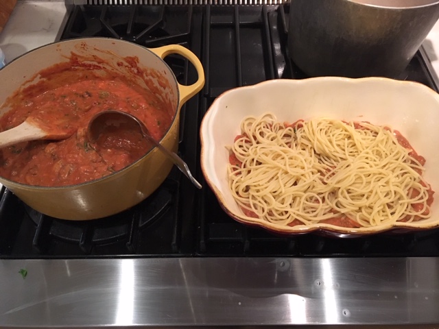 In hindsight, it’s interesting that I grew up on the Mississippi Gulf Coast eating gumbo and fried seafood and poboys but have no prior recollection of jambalaya. It’s a food unique to New Orleans and its Louisiana environs, at least in my mind, and it’s a food best served at parties (say during Carnival season) or to large groups like soon-to-be college students. There are essentially two styles of jambalaya – Creole featuring some form of tomato product and Cajun with no tomatoes and a color and consistency not unlike a traditional dirty rice recipe. The Fitzmorris recipe can go either way, and I added a 16-ounce can of crushed tomatoes to give it the color and consistency of that first jambalaya at Loyola. For my money, Donald Link’s jambalaya recipe represents the best of the Cajun variety.